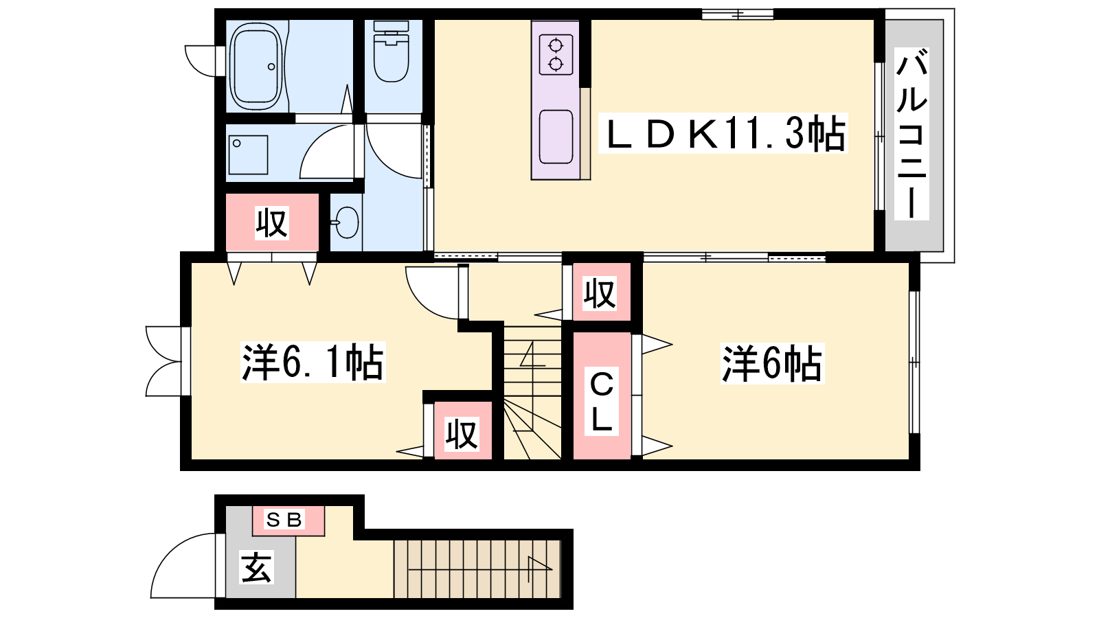 - LDK11.3帖、洋室6.1帖、洋室6帖