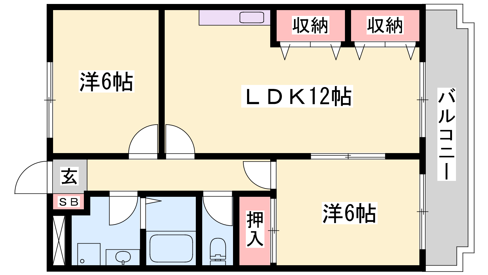 - DK12帖、洋室6帖、洋室6帖