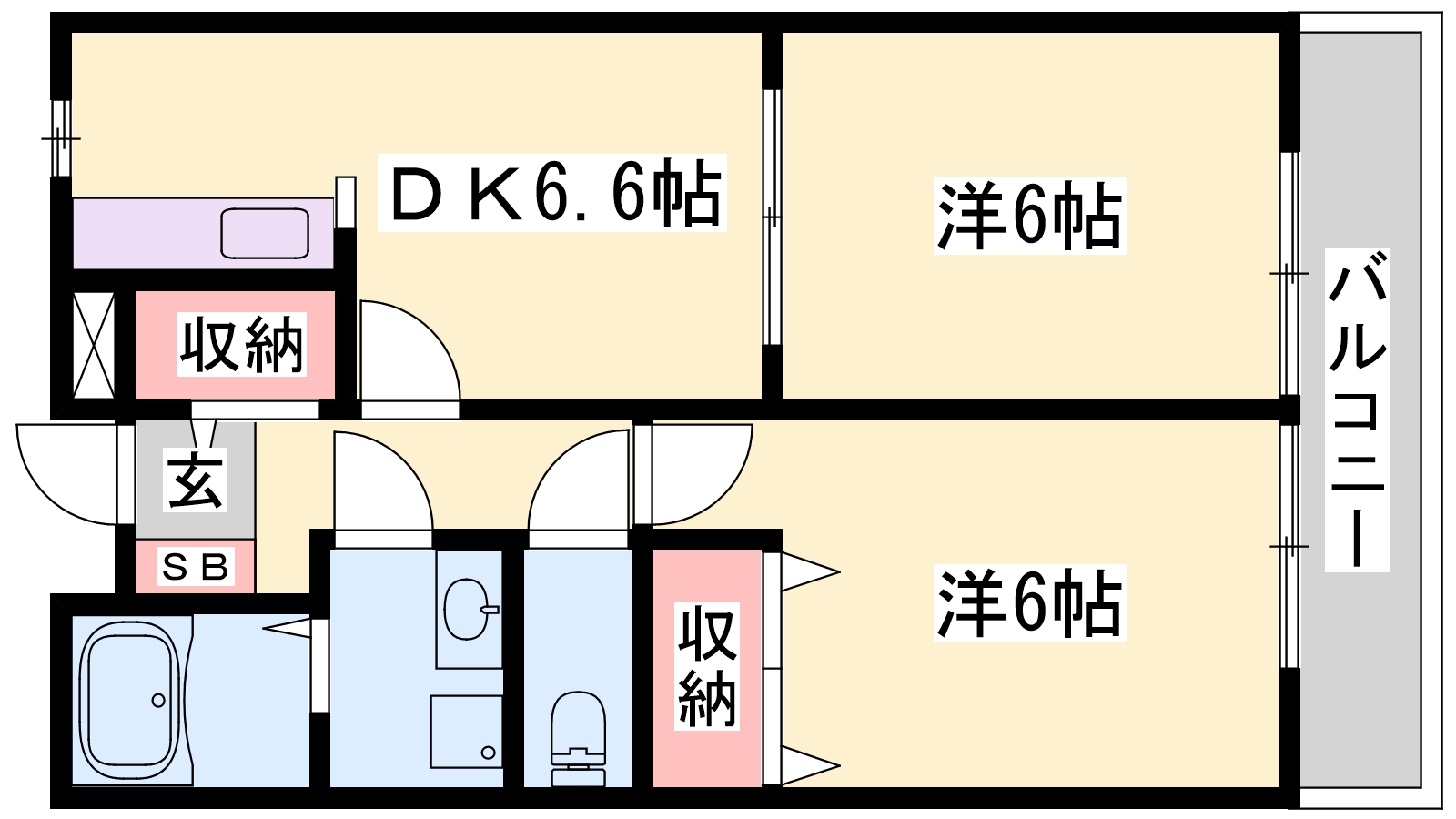 - DK6.6帖、洋室6帖、洋室6帖