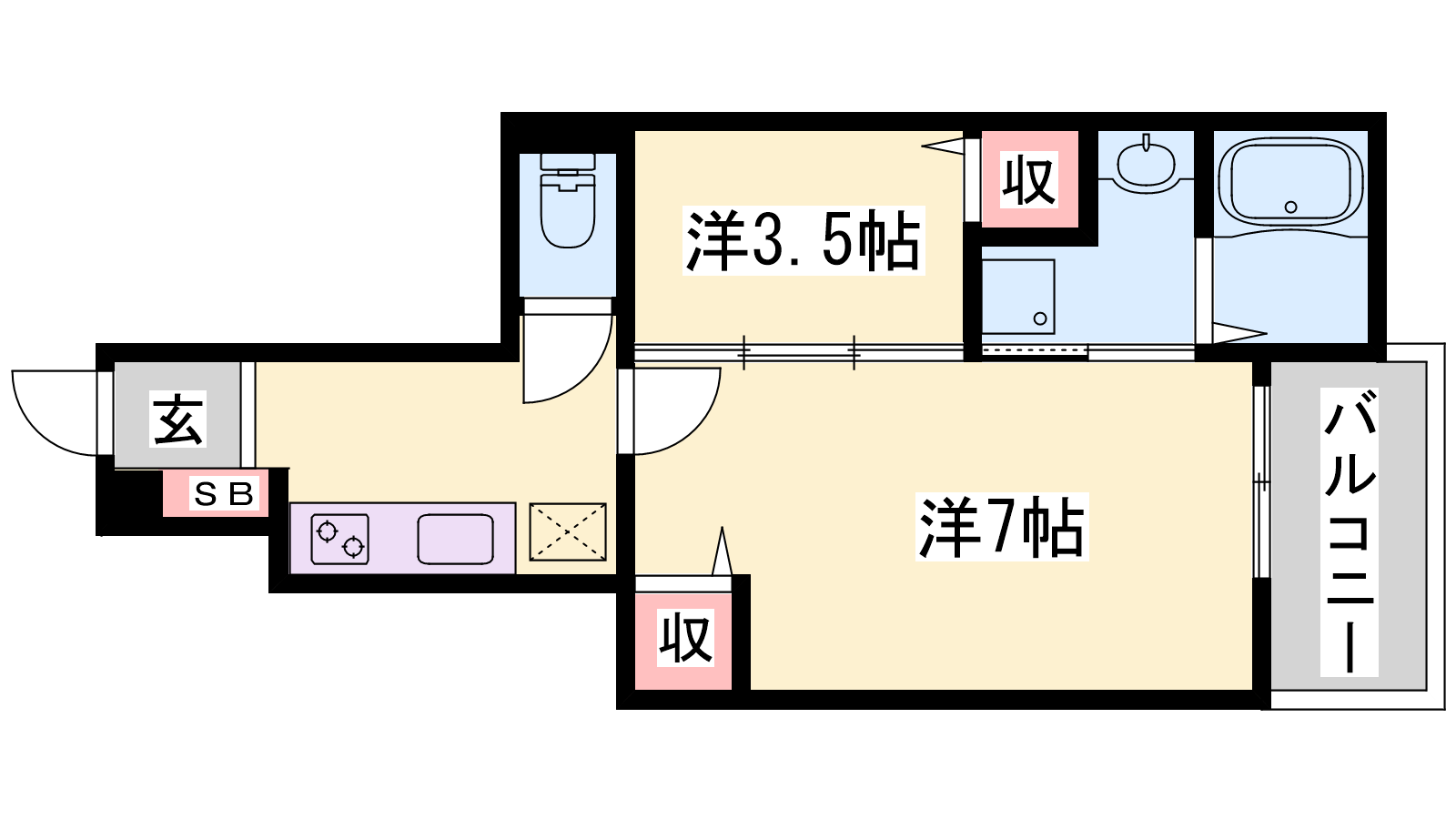- S3.5帖、洋室7帖