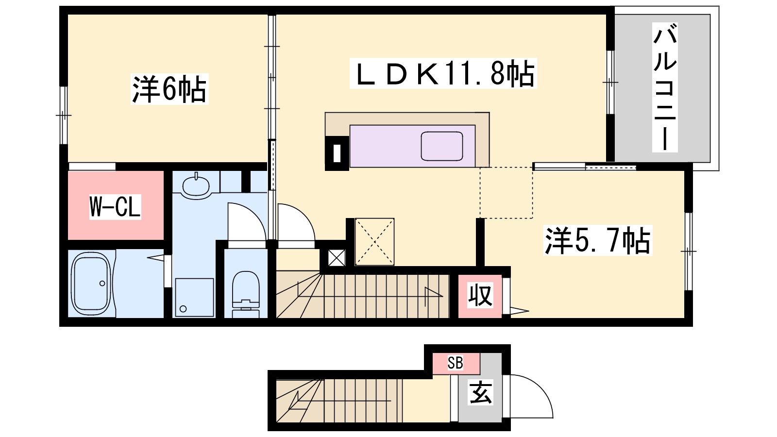 - LDK11.8帖、洋室6帖、洋室5.7帖