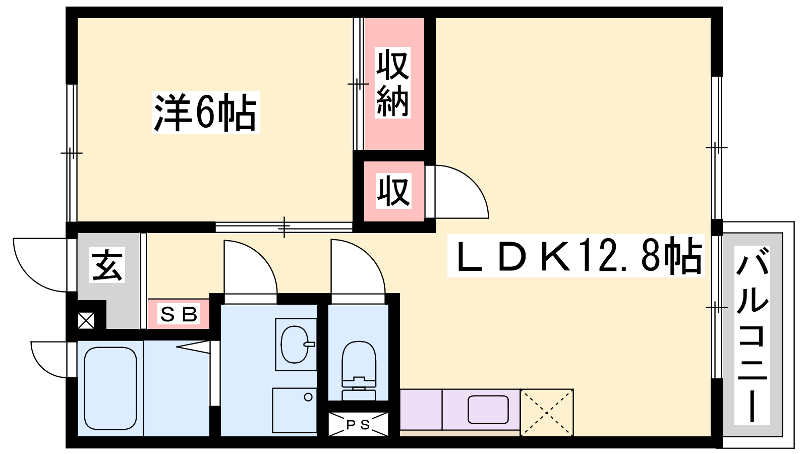 - LDK12.8帖、洋室6帖