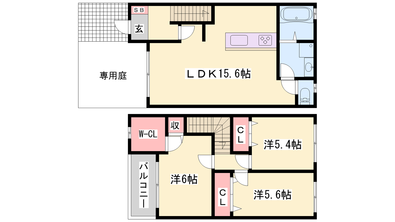 - LDK15.6帖、洋室6帖、洋室5.6帖、洋室5.4帖