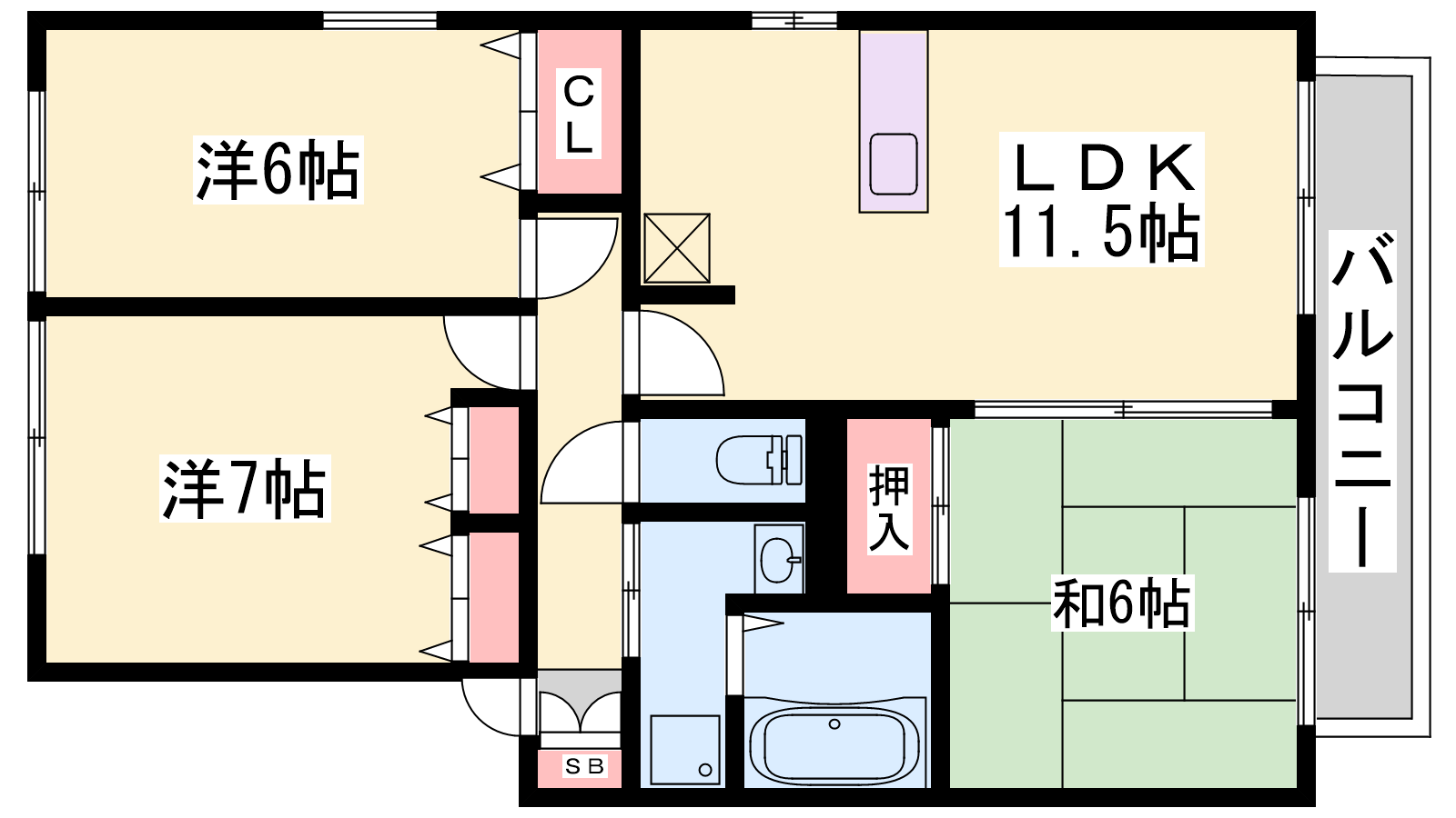 - LDK11.5帖、洋室7帖、洋室6帖、和室6帖