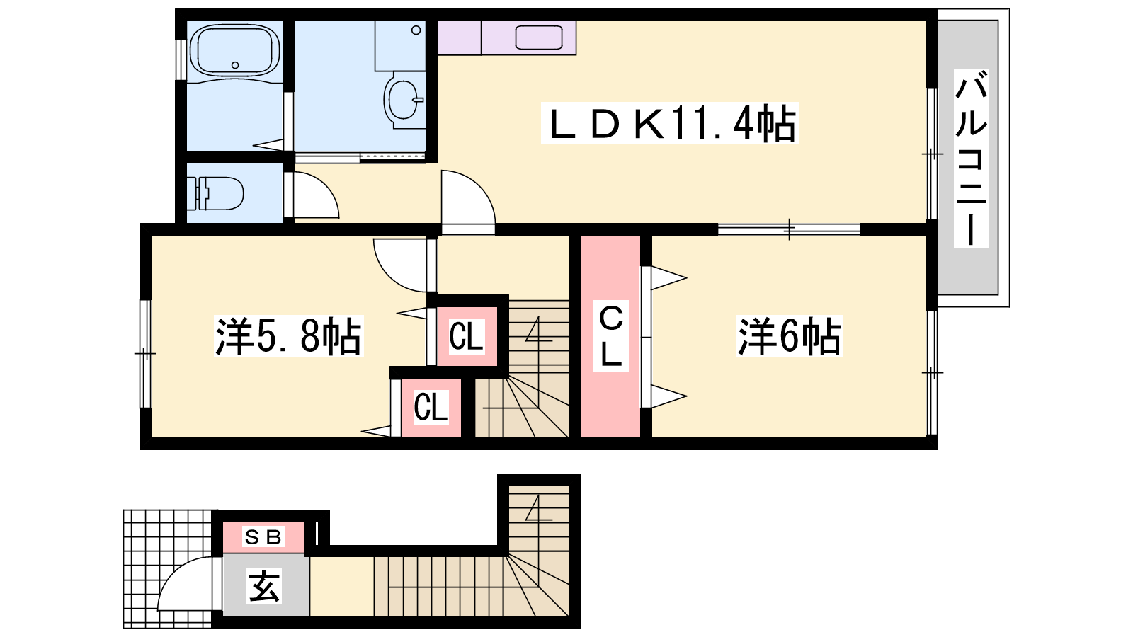 - LDK11.4帖、洋室6帖、洋室5.8帖