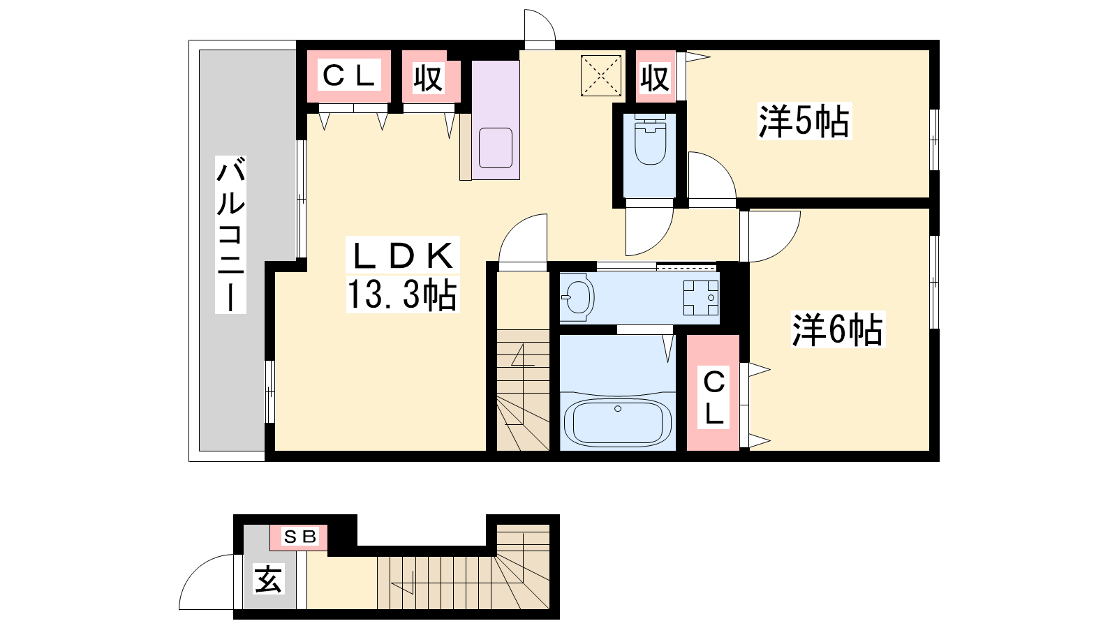 - LDK13.3帖、洋室6帖、洋室5帖