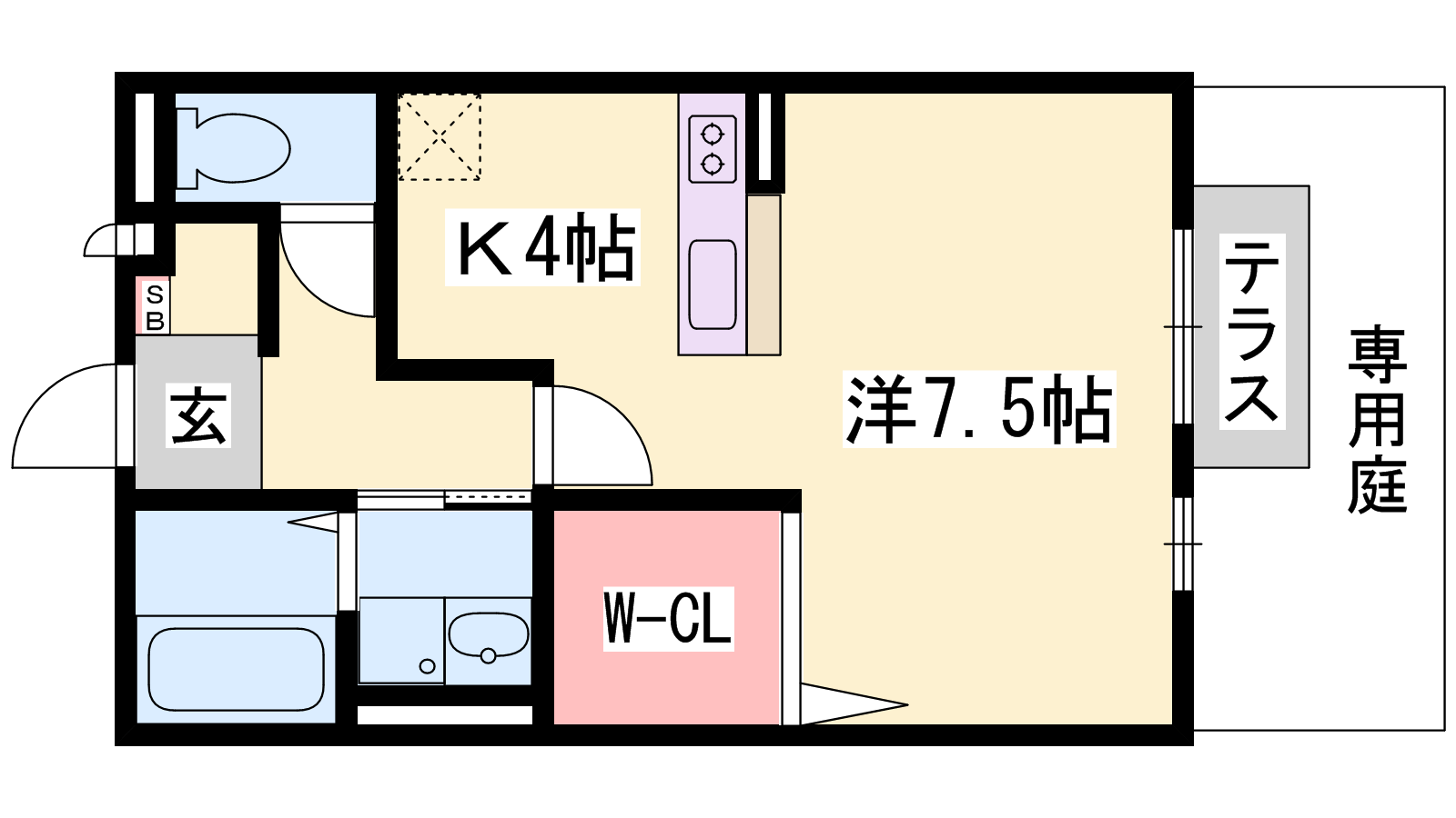 - K4帖、洋室7.5帖