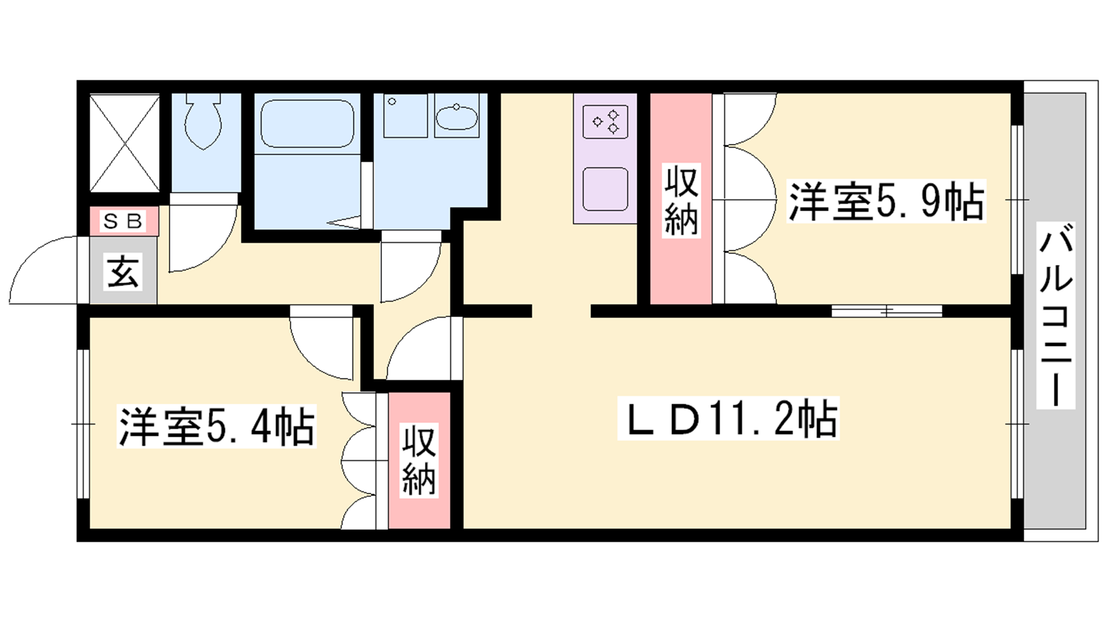 - LDK14.2帖、洋室5.9帖、洋室5.4帖