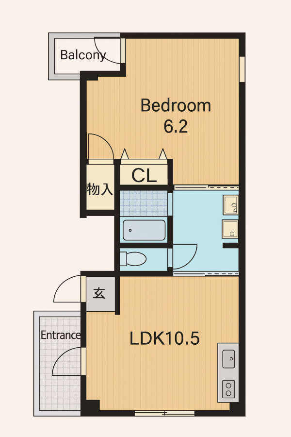 - LDK10.5帖、洋室6.2帖