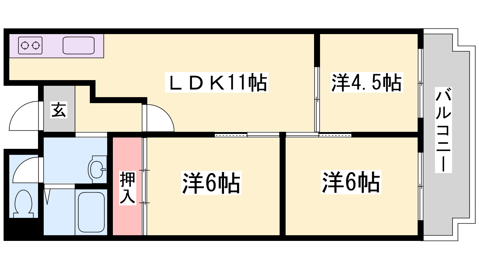 - LDK11帖、洋室6帖、洋室6帖、洋室4.5帖