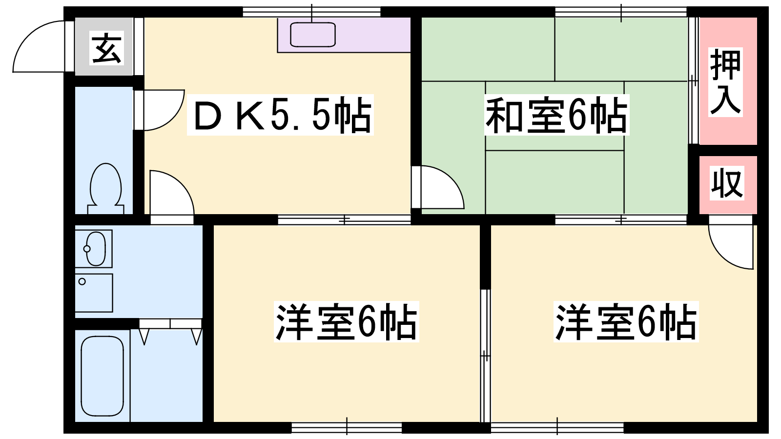 - DK5.5帖、和室6帖、洋室6帖、洋室6帖