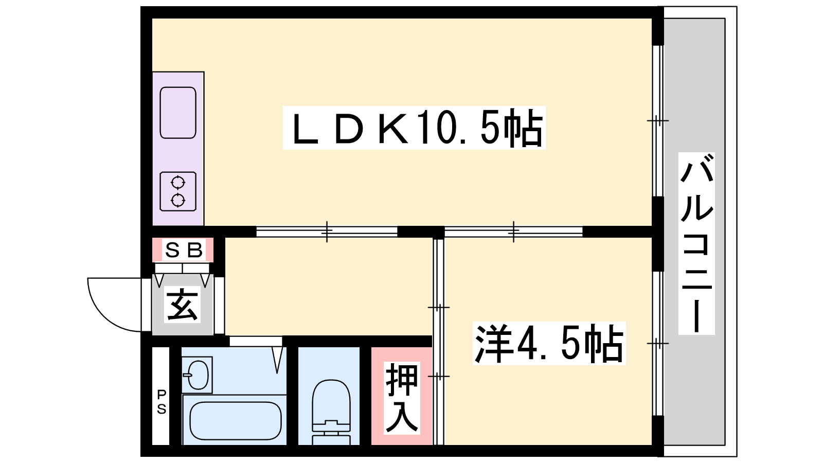 - LDK10.5帖、洋室4.5帖