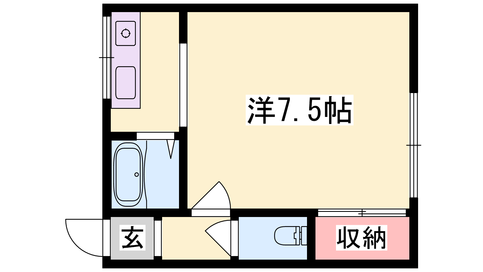 - K2帖、洋室7.5帖