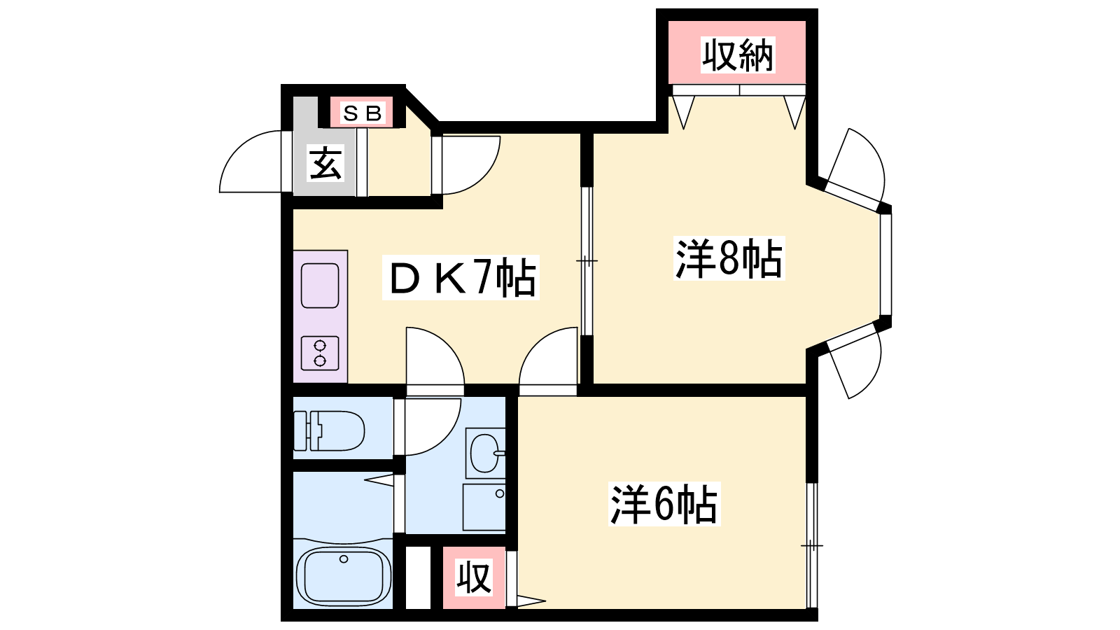 - DK7帖、洋室8帖、洋室6帖