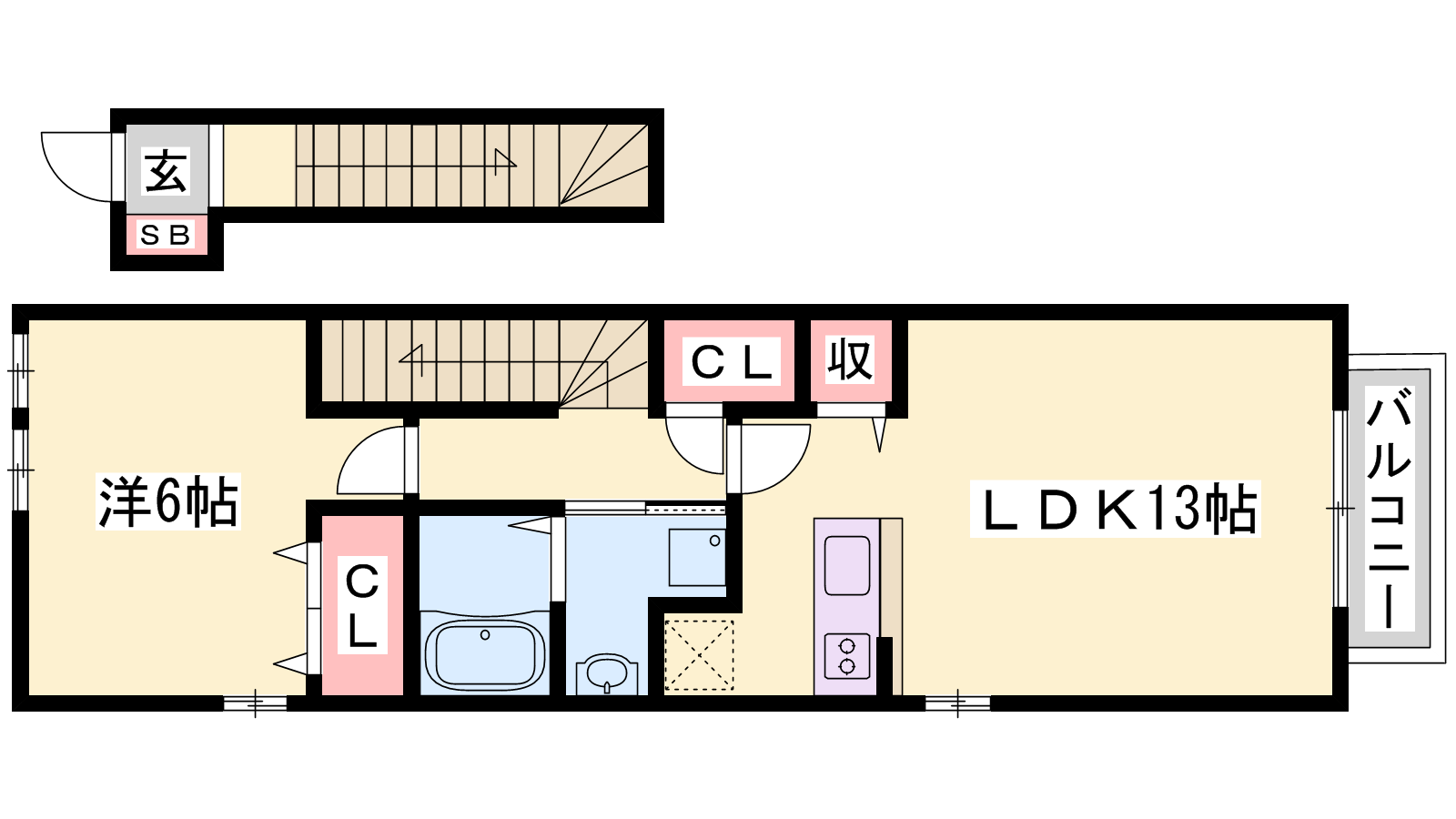 - LDK13帖、洋室6帖