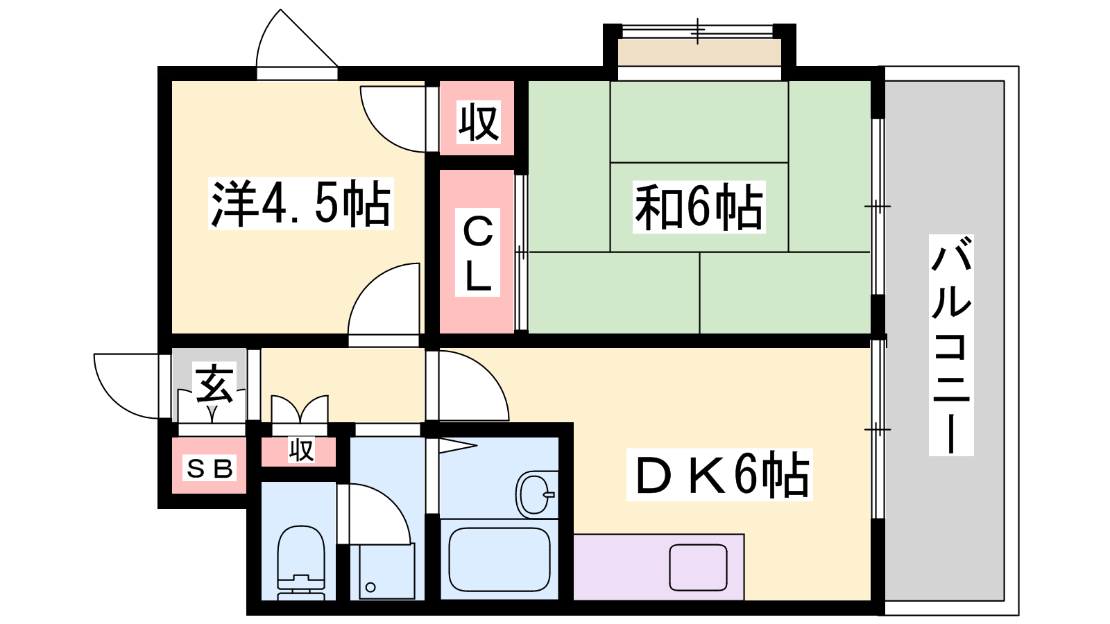 - DK6帖、和室6帖、洋室4.5帖