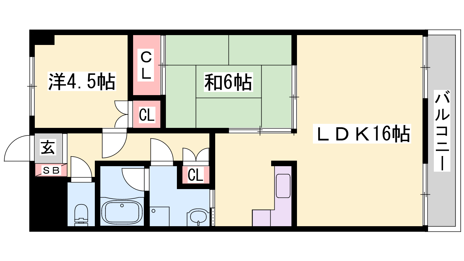 - LDK16帖、和室6帖、洋室4.5帖