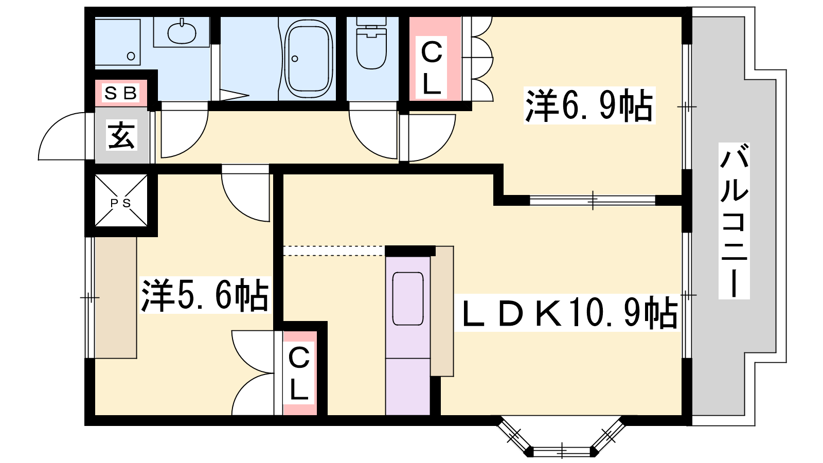 - LDK10.9帖、洋室6.9帖、洋室5.6帖