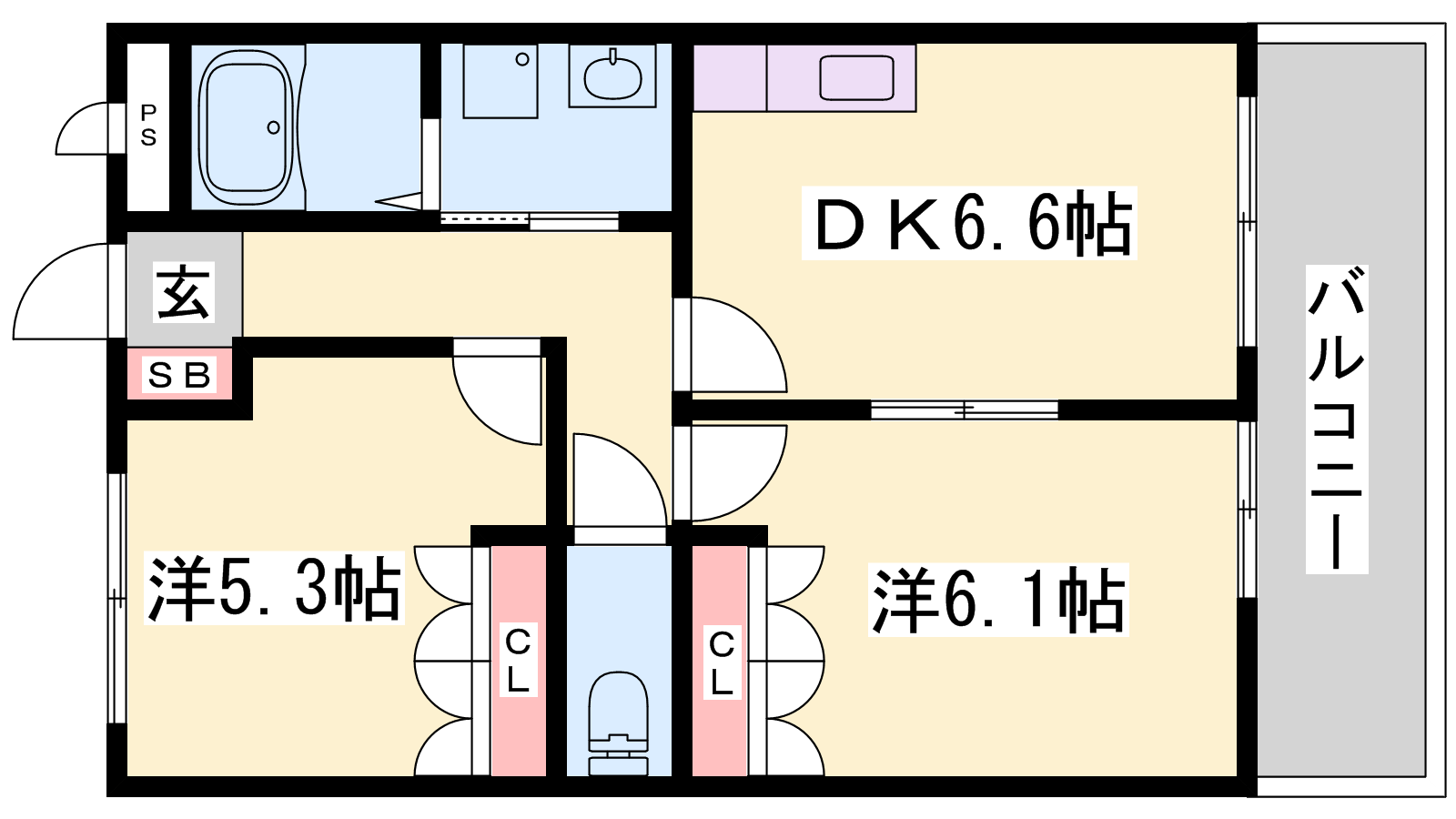 - DK6.6帖、洋室6.1帖、洋室5.3帖