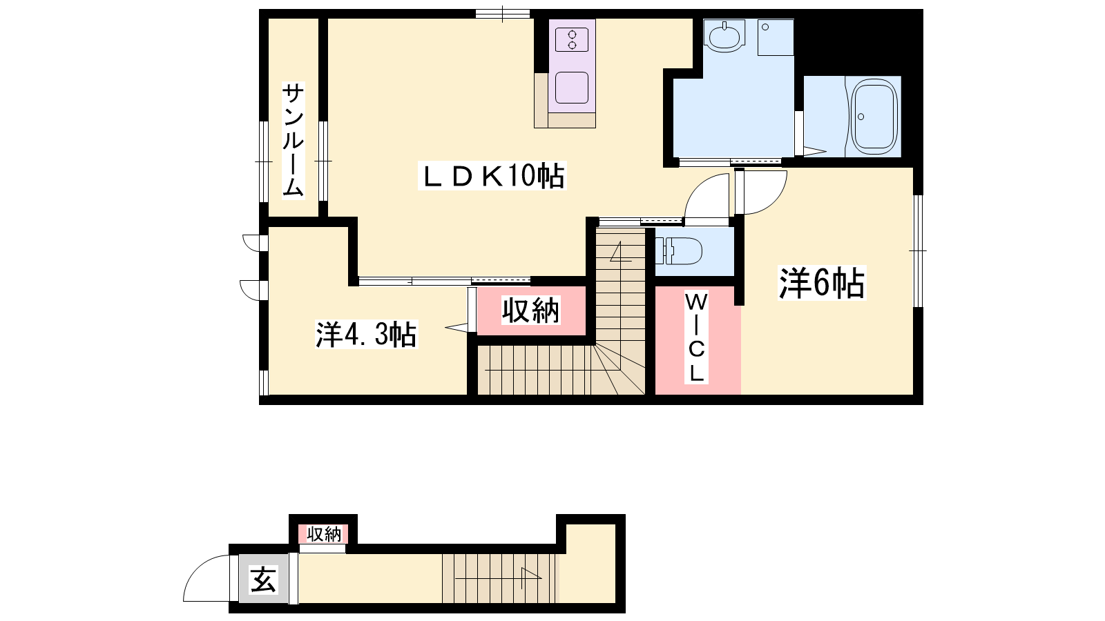 - LDK10帖、洋室6帖、洋室4.3帖