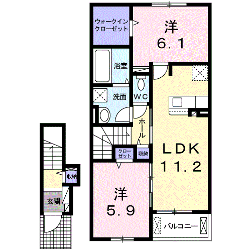 - LDK11.2帖、洋室6.1帖、洋室5.9帖