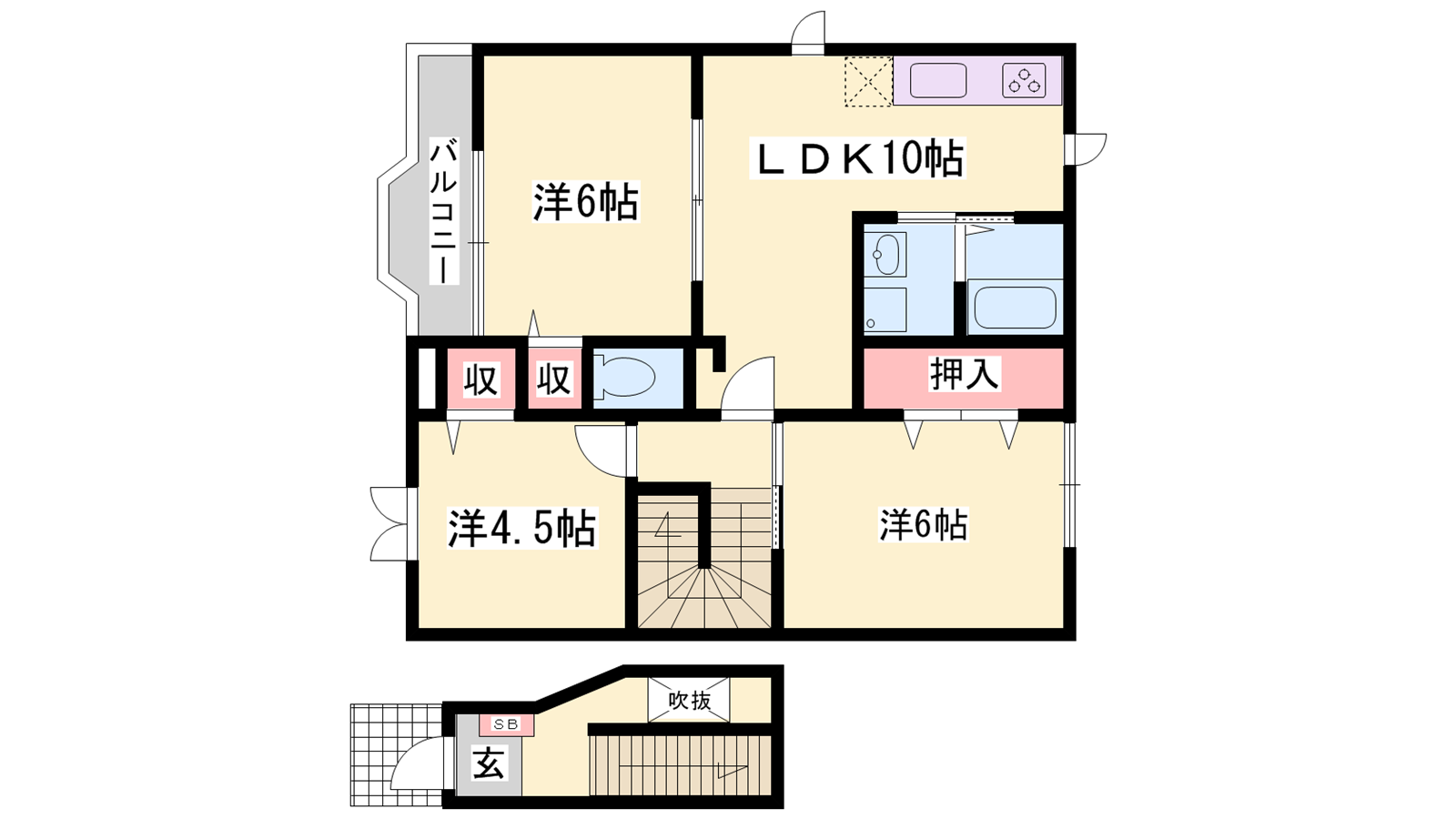 - LDK10帖、洋室6帖、洋室6帖、洋室4.5帖