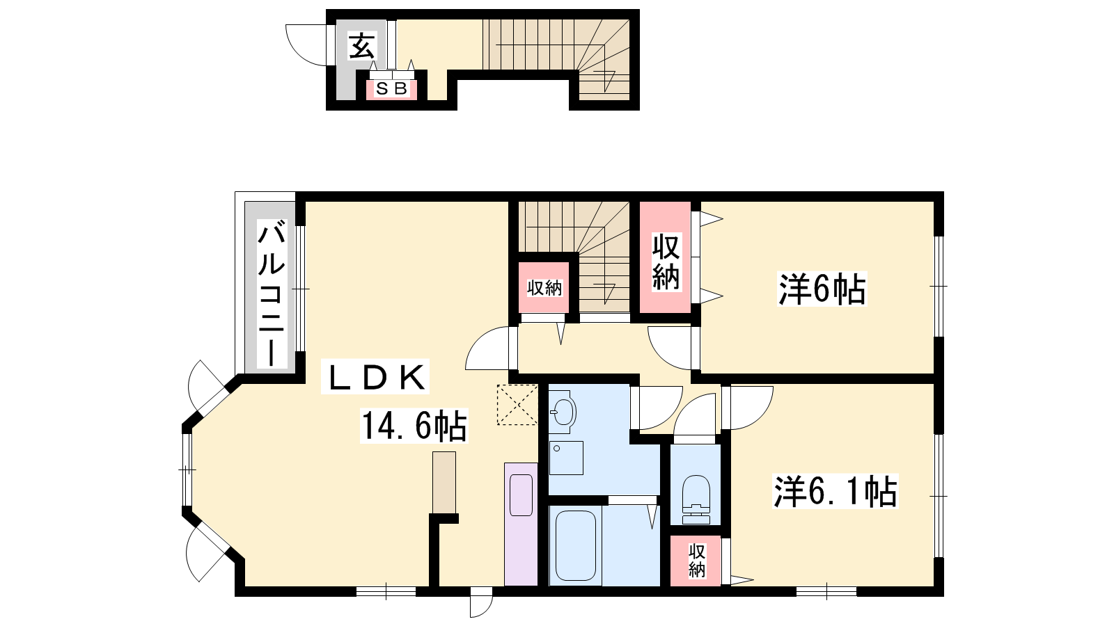 - LDK14.6帖、洋室6.1帖、洋室6帖
