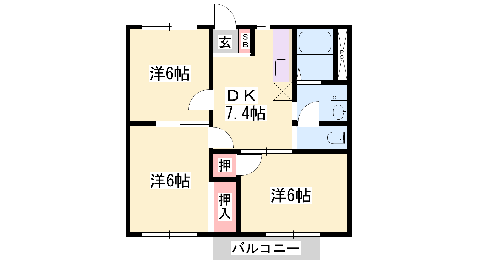 - DK7.4帖、洋室6帖、洋室6帖、洋室6帖