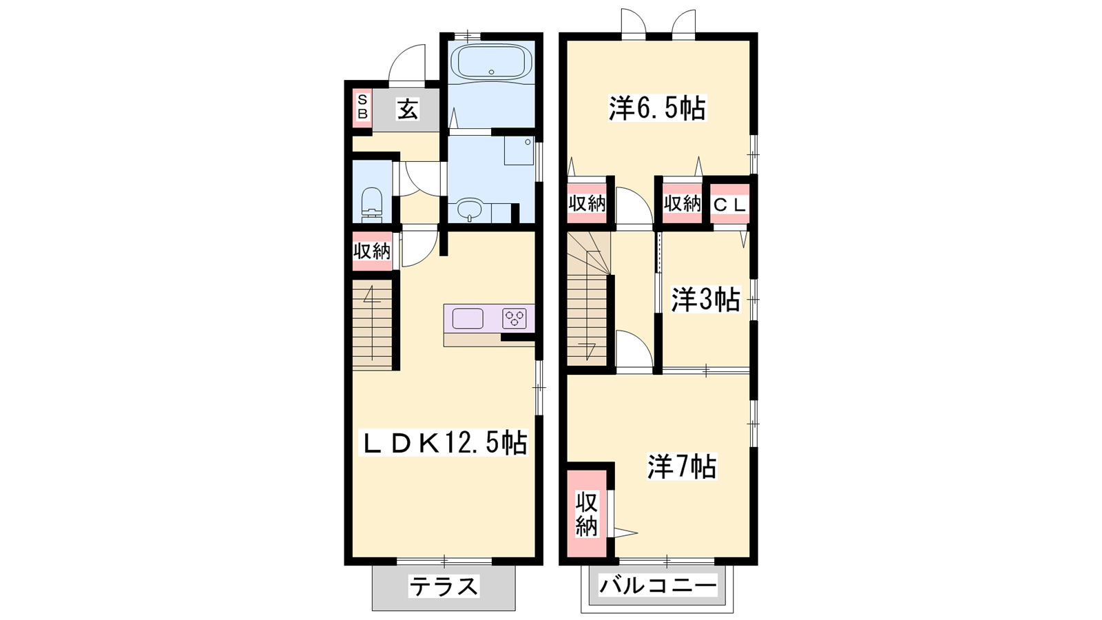 - LDK12.5帖、洋室7帖、洋室6.5帖、洋室3帖