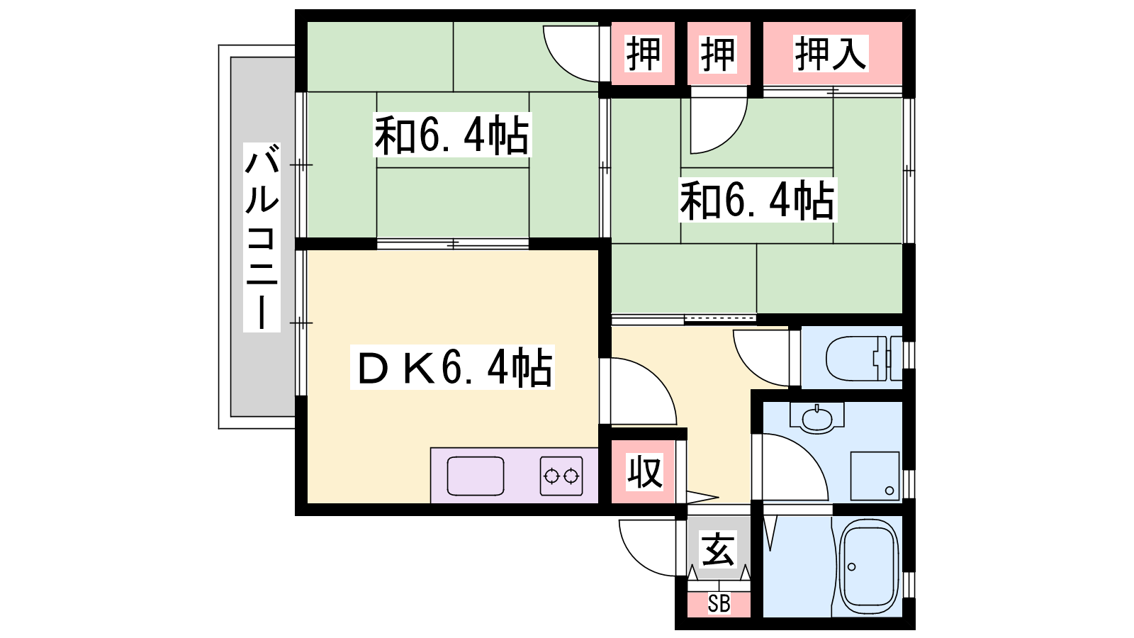 - DK6.4帖、洋室6.4帖、洋室6.4帖