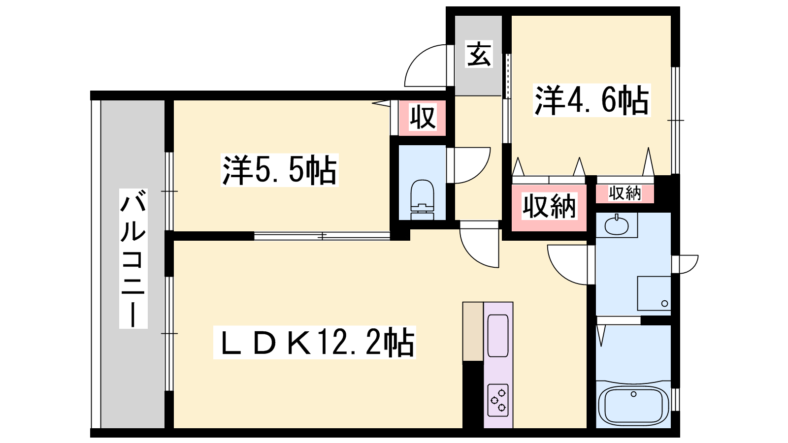 - LDK12.2帖、洋室5.5帖、洋室4.6帖