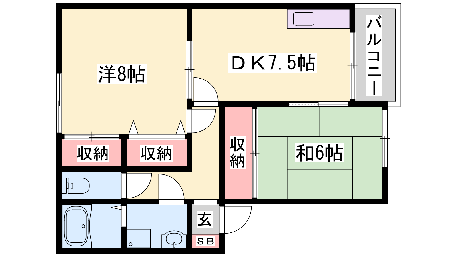 - DK7.5帖、洋室8帖、和室6帖