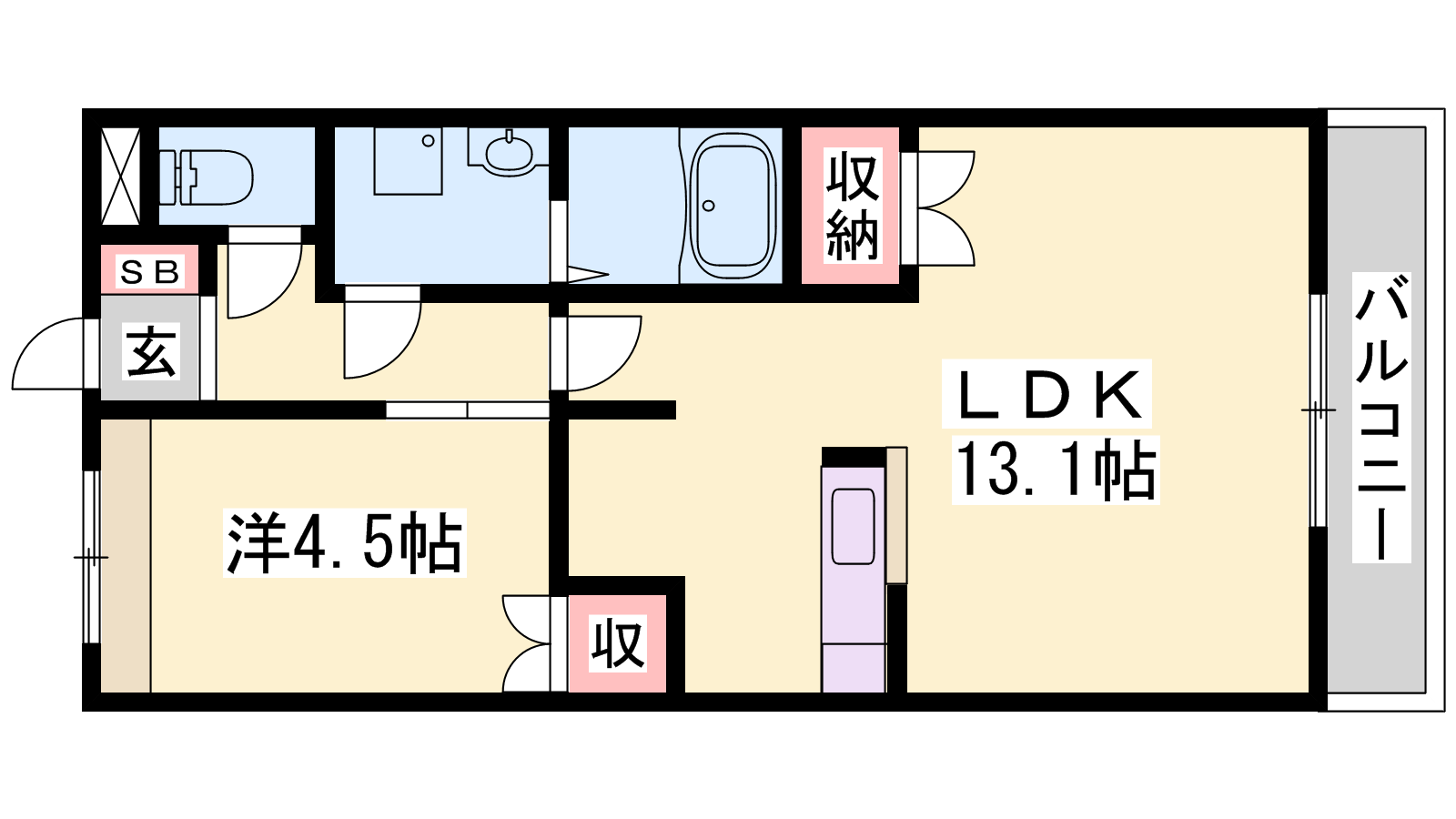 - LDK13.1帖、洋室4.5帖