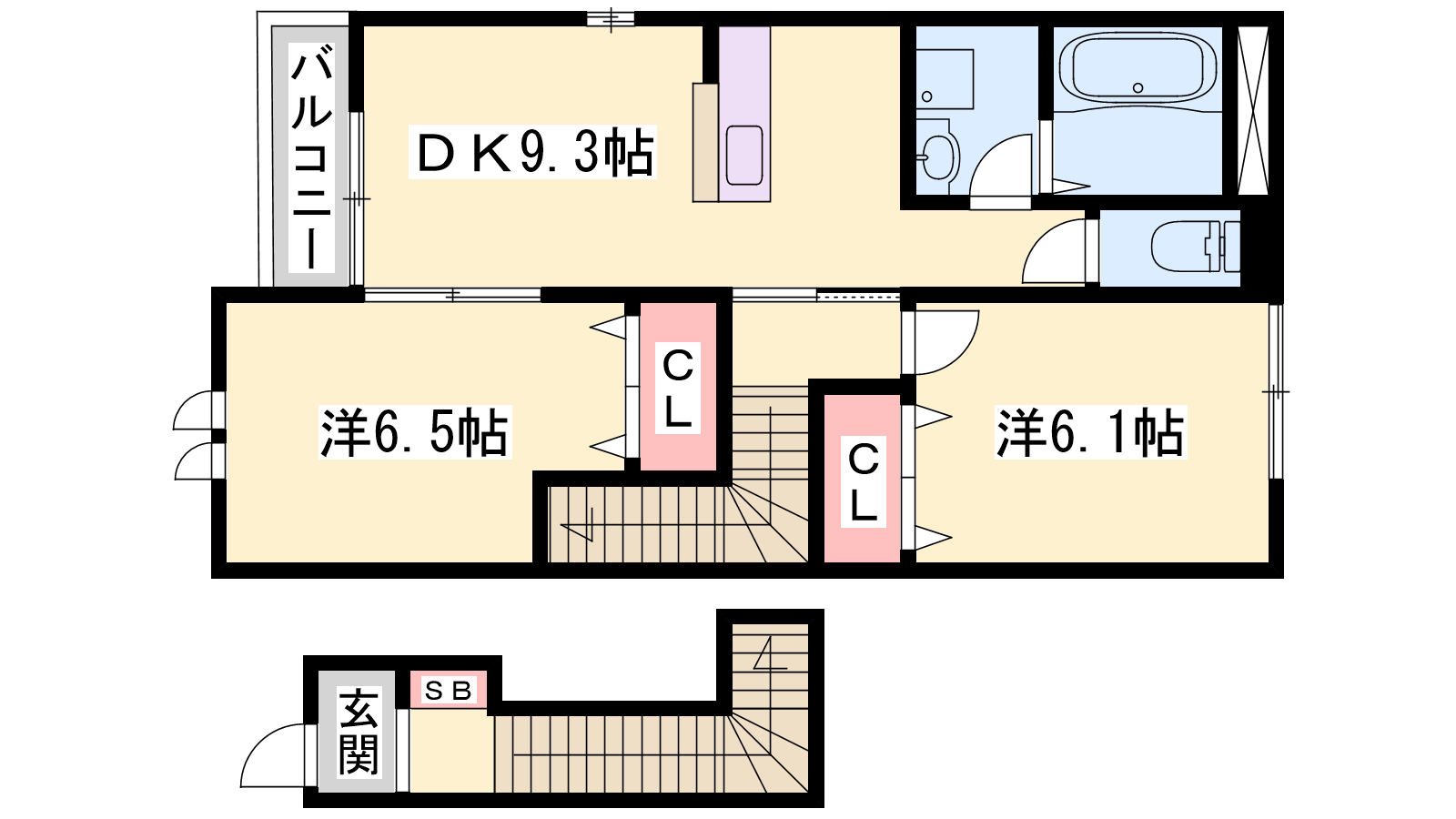 - DK9.3帖、洋室6.5帖、洋室6.1帖