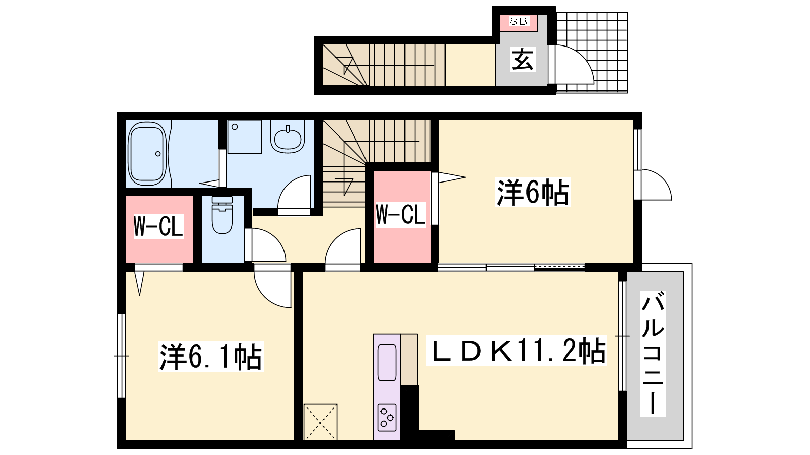 - LDK11.2帖、洋室6.1帖、洋室6帖