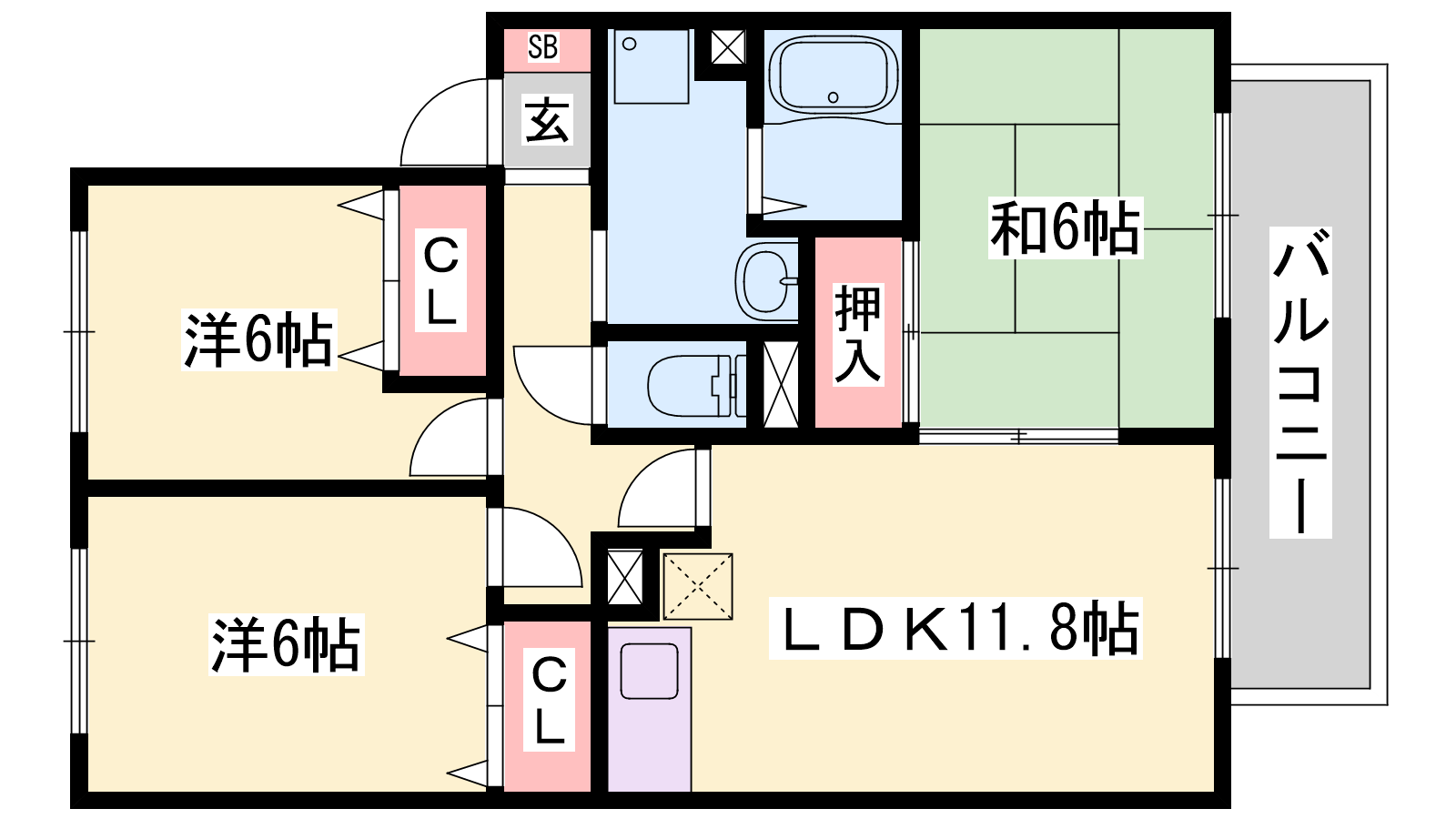 - LDK11.75帖、洋室6帖、洋室6帖、和室6帖