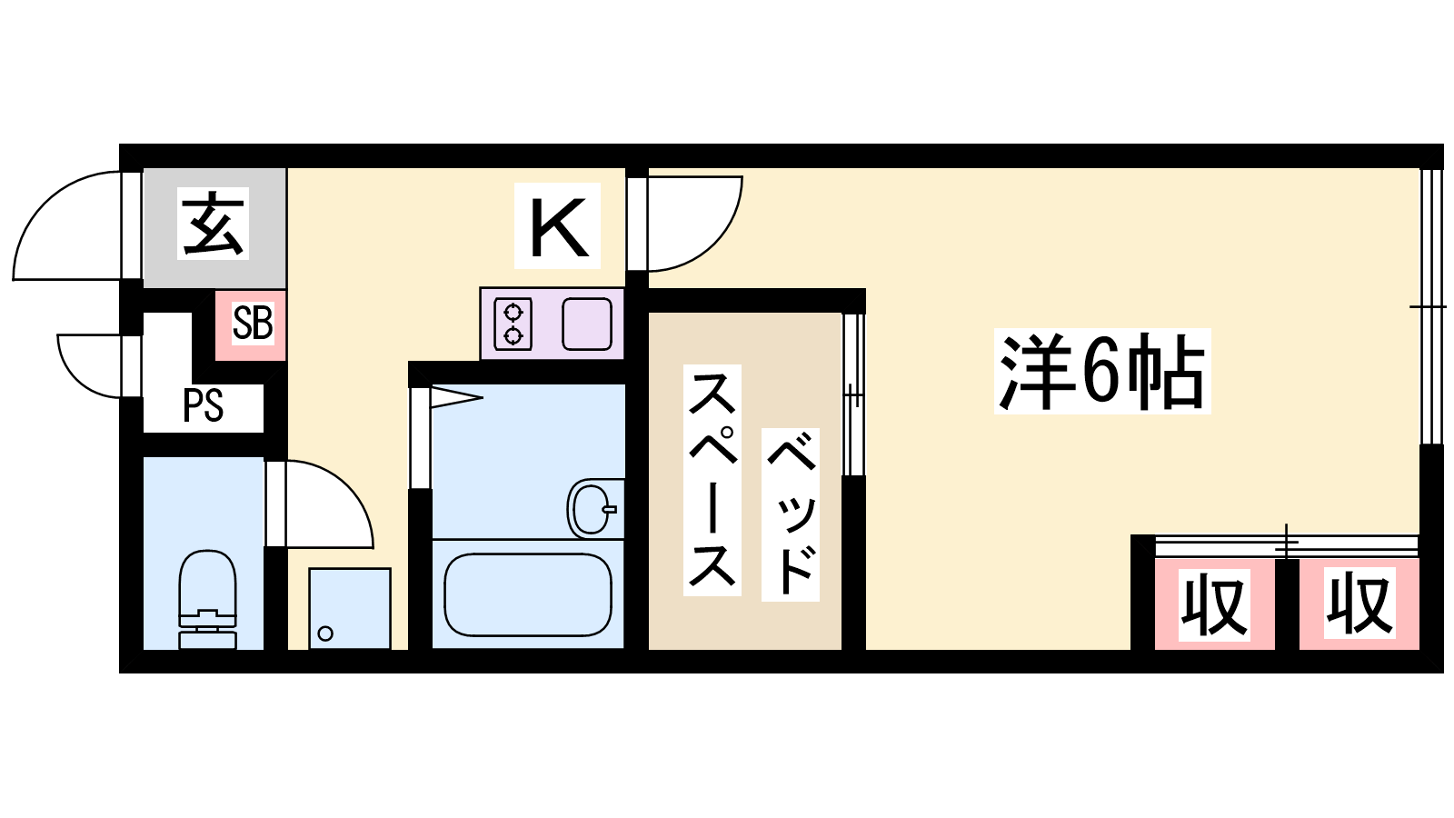 - K2帖、洋室6帖