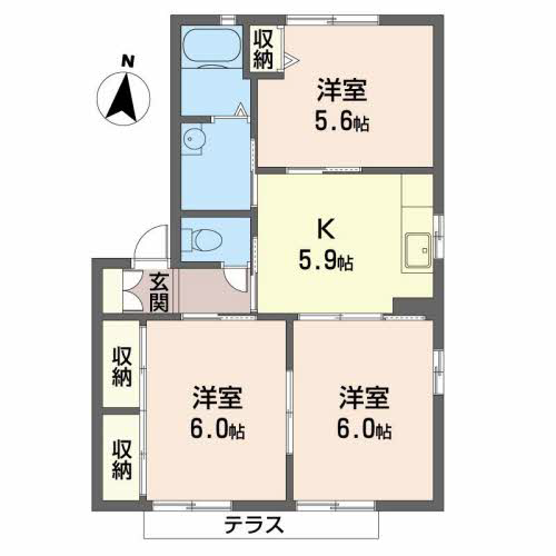 - DK5.9帖、洋室6帖、洋室6帖、洋室5.6帖