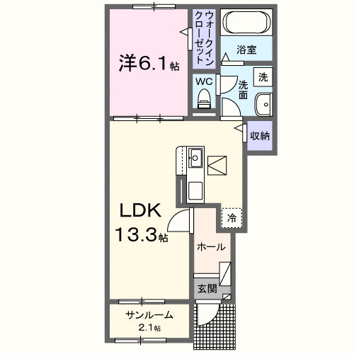 - LDK13.3帖、洋室6.5帖、洋室6.1帖