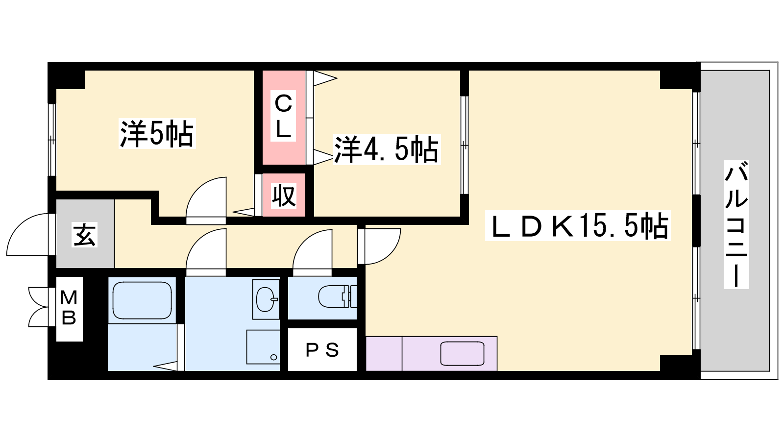 - LDK15.5帖、洋室4.5帖、洋室5帖