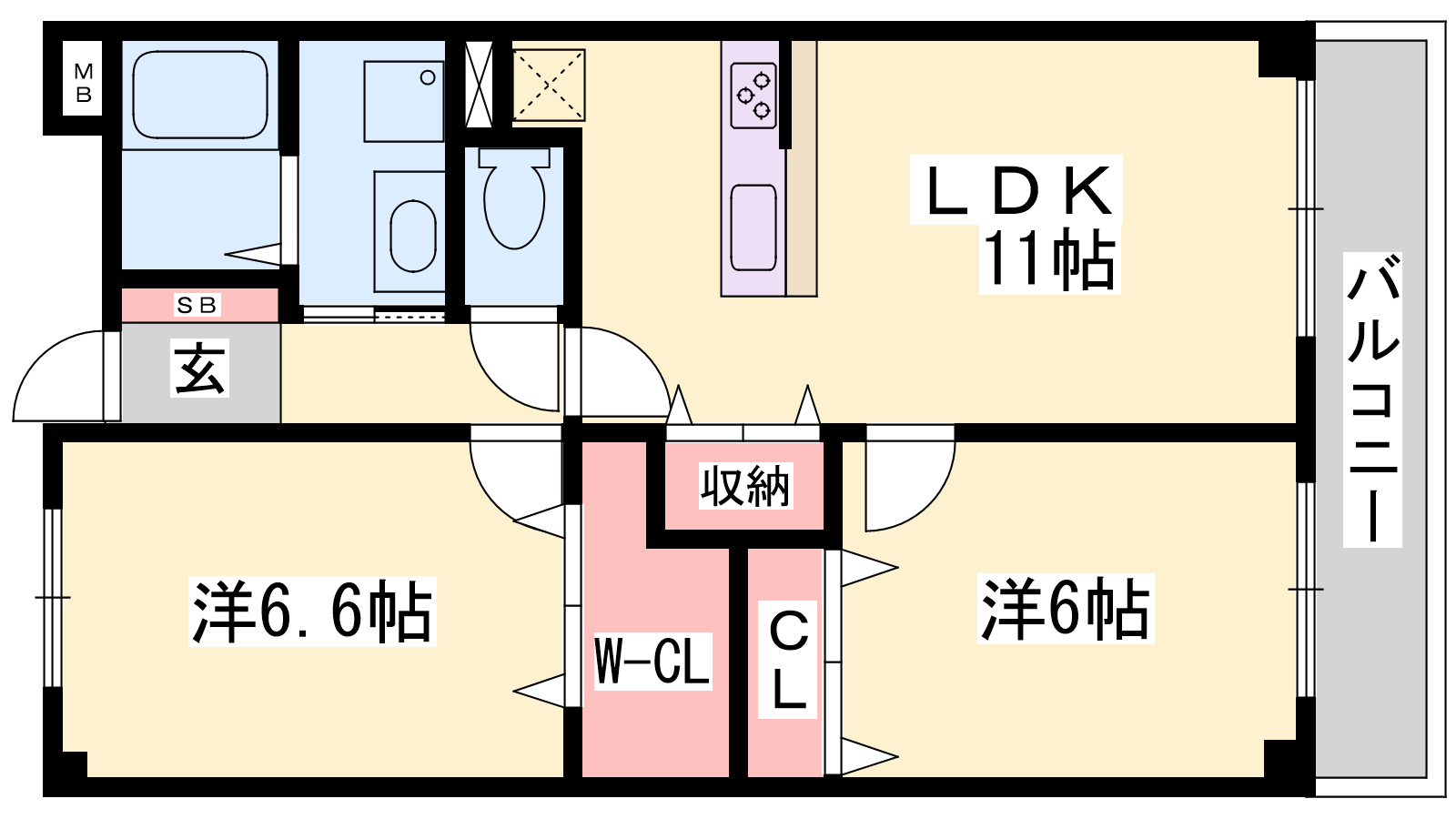 - LDK11帖、洋室6.6帖、洋室6帖