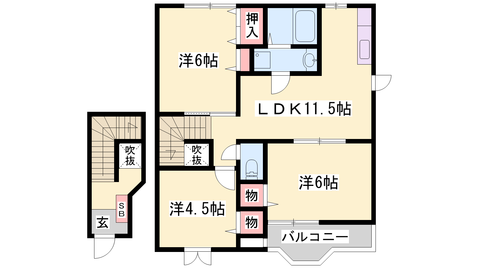 - LDK11.5帖、洋室6帖、洋室4.5帖、洋室6帖