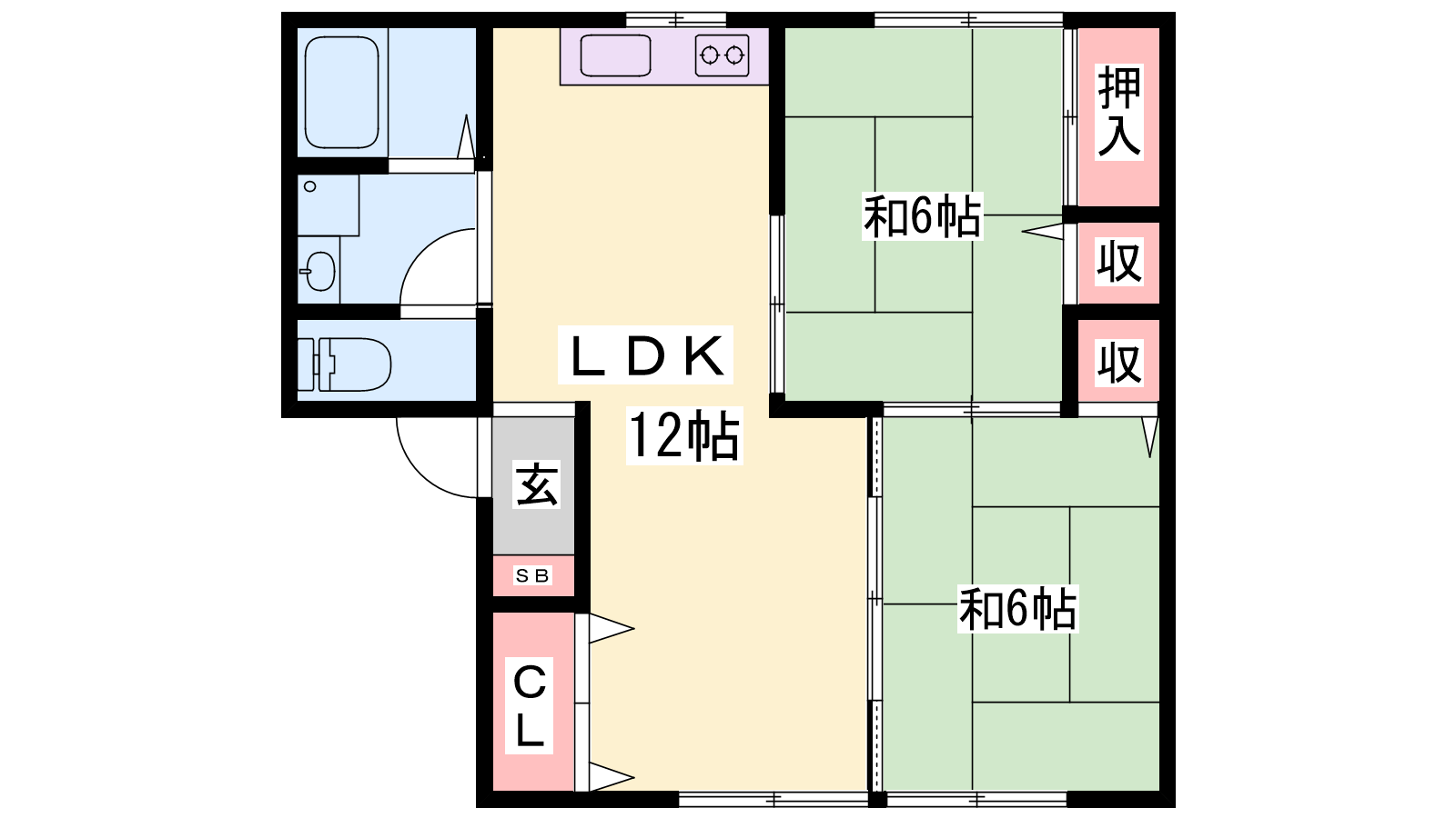 - LDK12帖、和室6帖、和室6帖