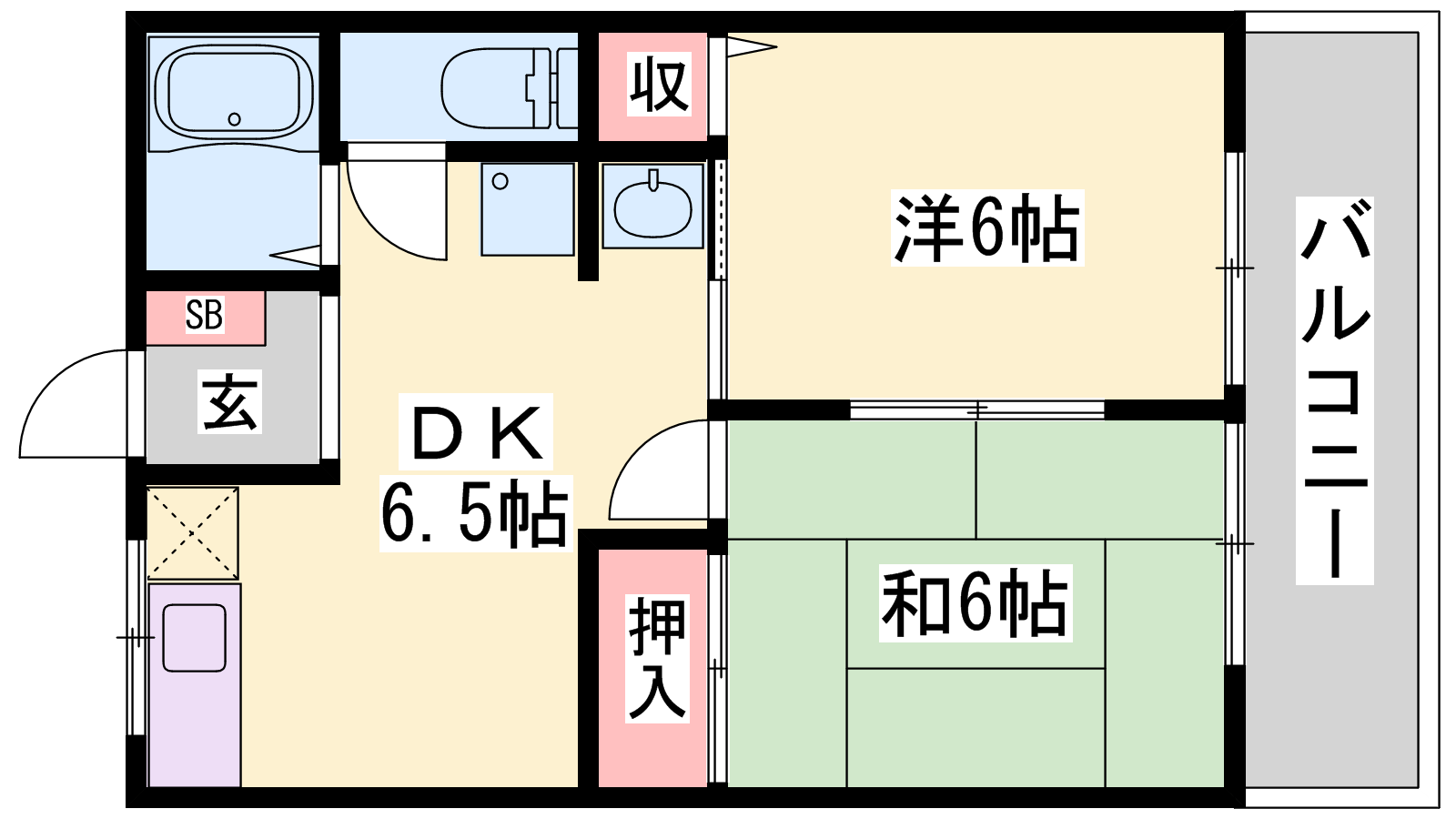 - DK6.5帖、洋室6帖、和室6帖