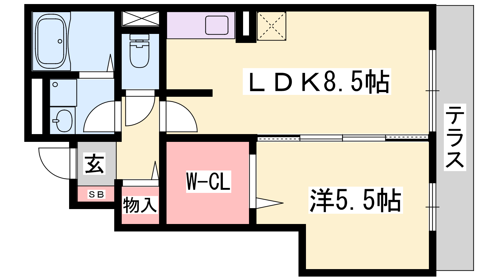 - LDK8.5帖、洋室5.5帖