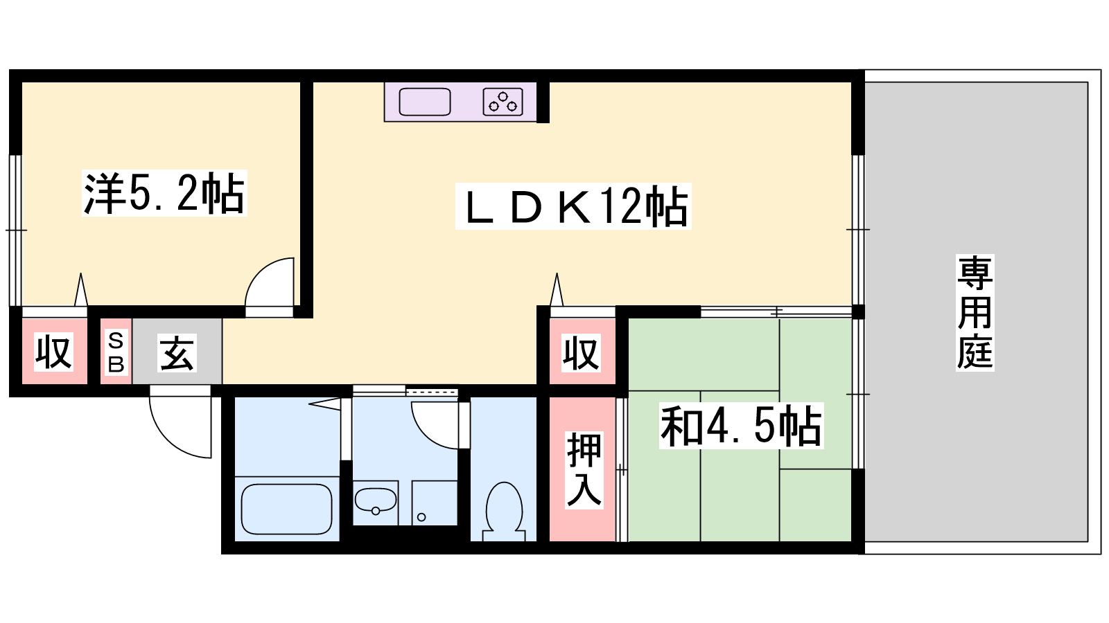 - LDK12帖、洋室5.2帖、洋室4.5帖