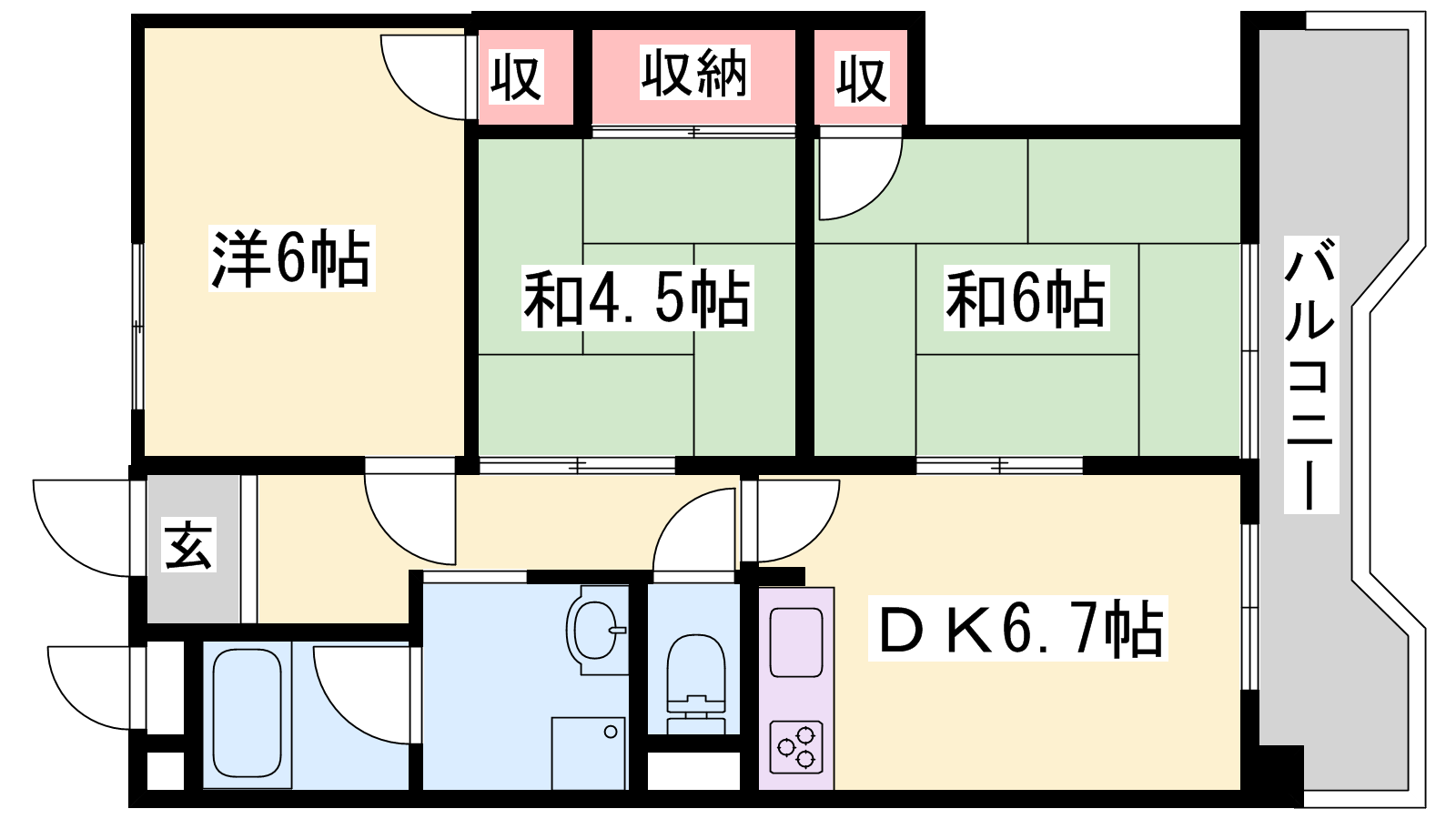 - DK6.75帖、洋室6帖、和室6帖、和室4.5帖