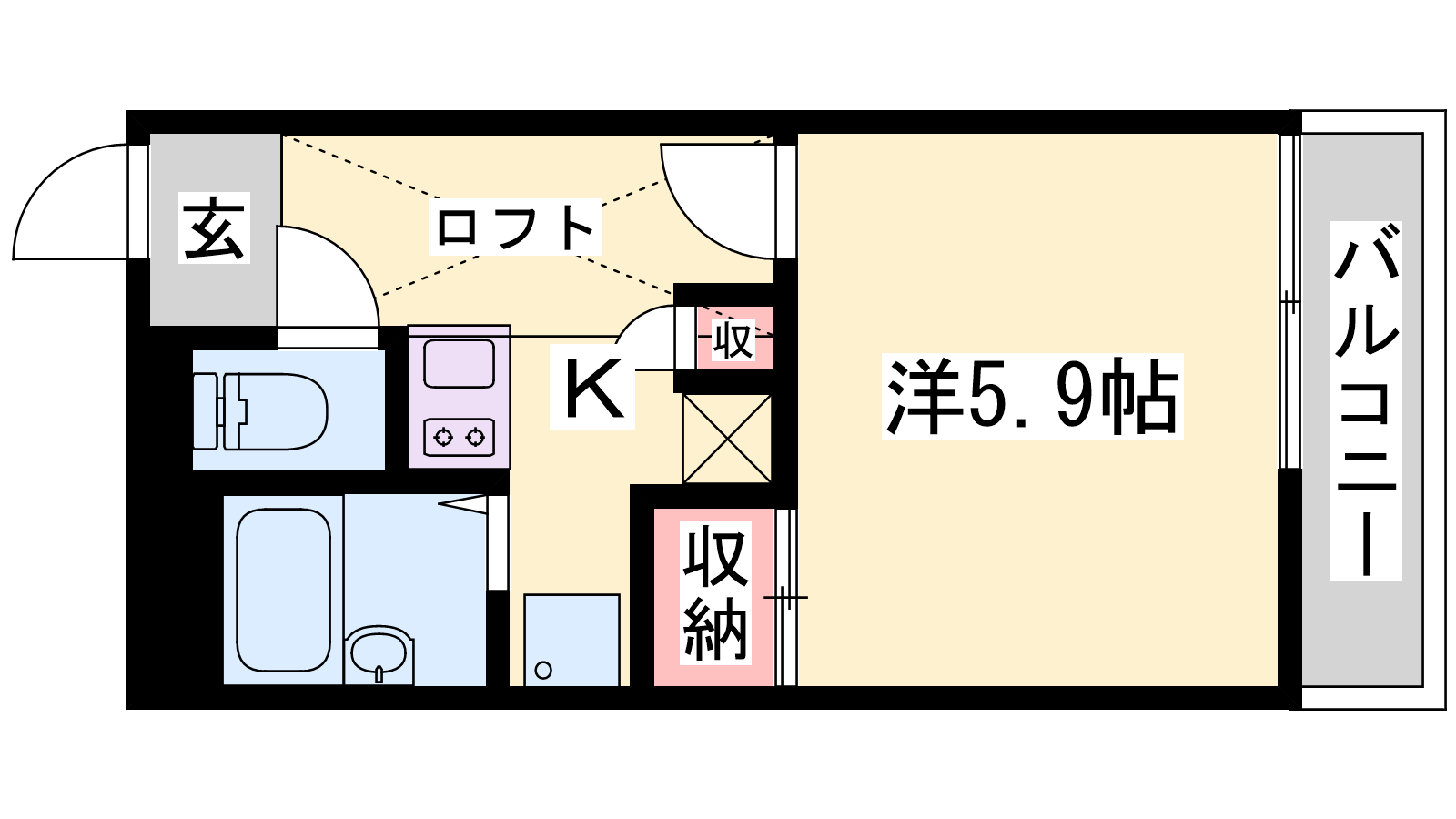 - K2帖、洋室5.9帖