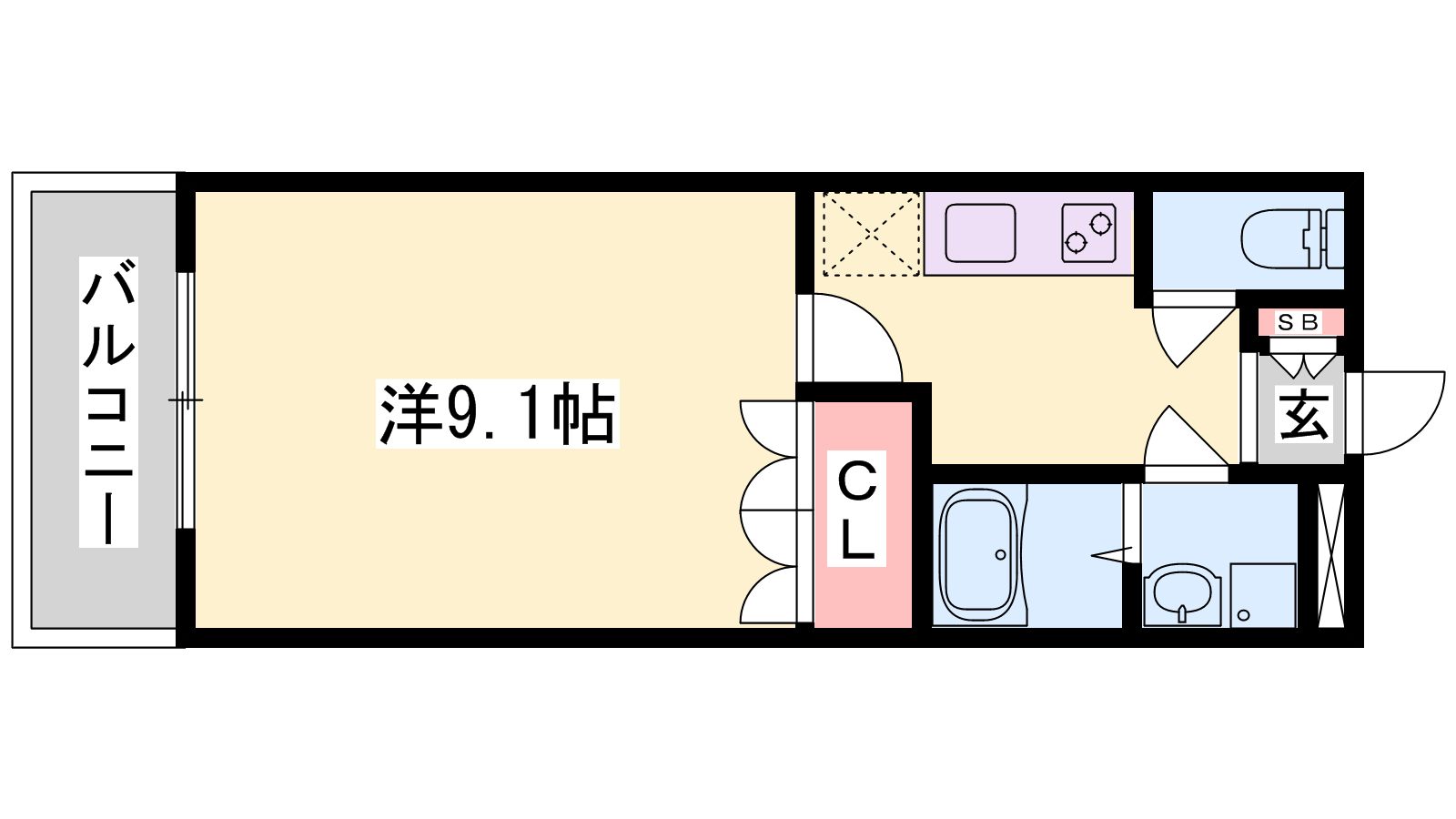 - K2.5帖、洋室9.1帖