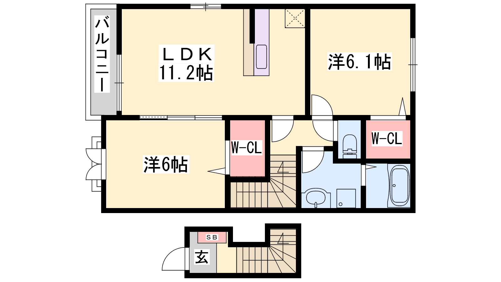 - LDK11.2帖、洋室6.1帖、洋室6帖